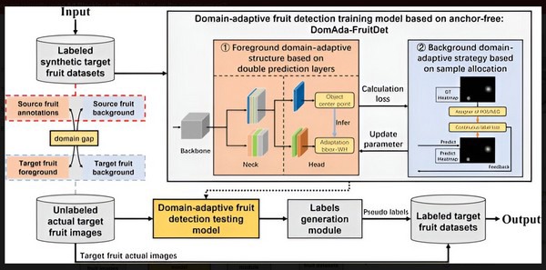 Dans l’industrie fruitière, l’intégration de l’apprentissage profond pour des tâches telles que la prédiction du rendement et la cueillette automatisée a été déterminante. Le processus d’étiquetage des données de formation reste toutefois un défi. Plant Phenomics a récemment publié une étude intitulée « DomAda-FruitDet : Domain-Adaptive Anchor-Free Fruit Detection Model for Auto Labeling », qui vise à combler le fossé qui existe entre les données d’entraînement synthétiques et les données d’application du monde réel. Cet écart se manifeste souvent par des divergences dans l’échelle des objets de premier plan et la cohérence de l’arrière-plan.