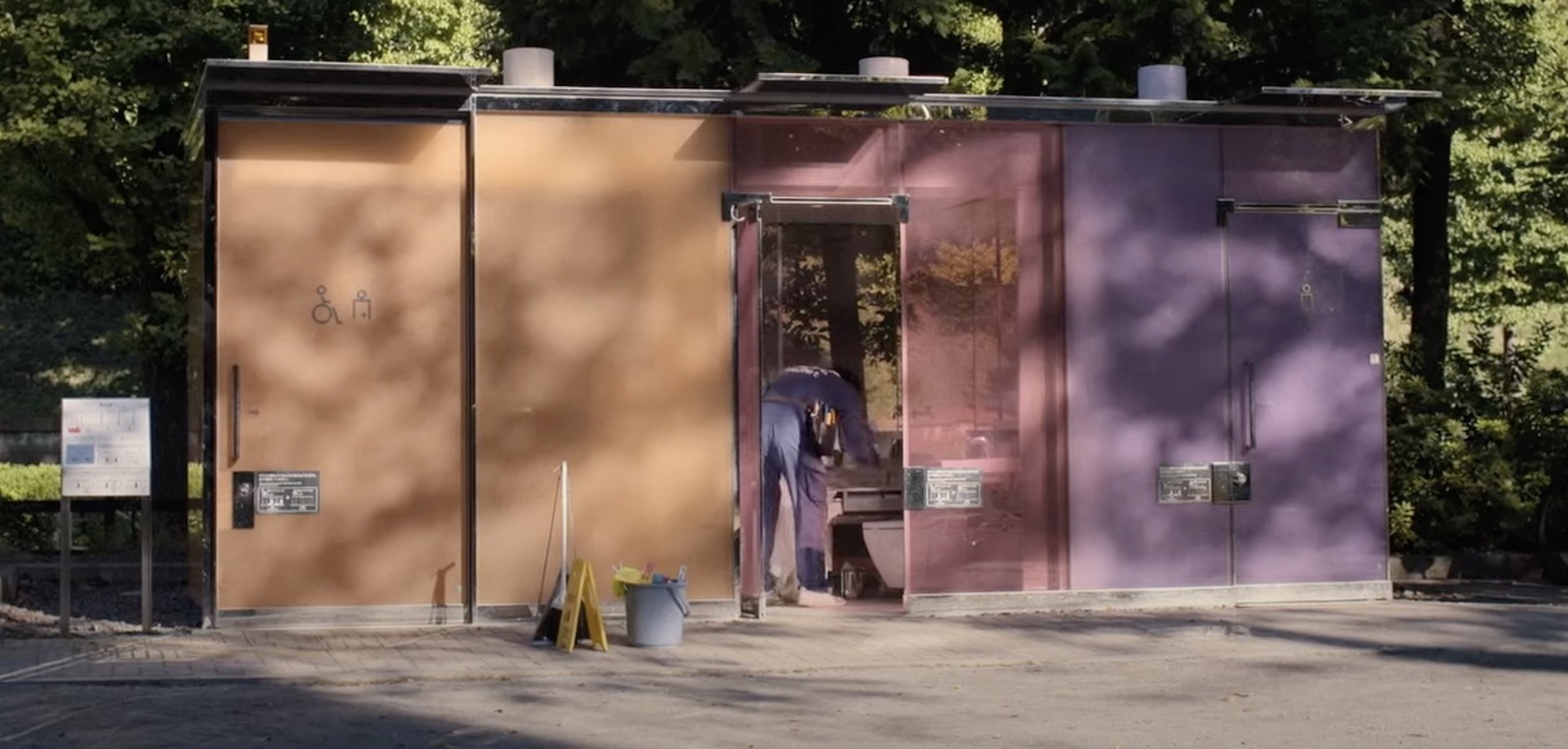 Il rend partiellement compte d’une expérience développée par le Tokyo Toilet Project lancé par l’ONG The Nippon Foundation, qui vise à réhabiliter 17 toilettes publiques de l’agglomération de Shibuya en œuvres d’art, toutes gratuites et utilisables par tous et toutes indépendamment du sexe, de l’âge ou du handicap.