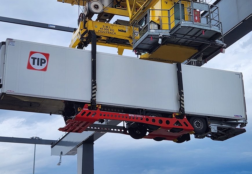 À l’image du R2L dont deux versions existent déjà, une troisième étant en préparation, le dispositif Nikrasa consiste en un panier intégré positionné directement sous la remorque pour rigidifier l’ensemble. La tare de ce panier intégré est de 2,5 tonnes et sa capacité d’emport de 41,5 t. Sa manutention est extrêmement simple puisqu’elle repose désormais sur l’utilisation des traditionnels portiques de levage et autres reach stackers. Les deux premières versions du Nikrasa nécessitaient en effet l’utilisation d’une rampe de chargement.