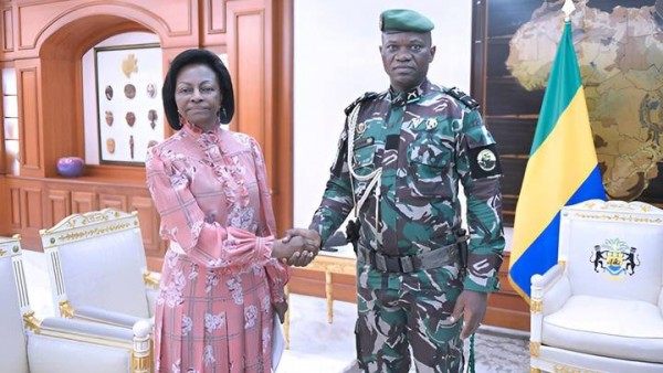 Marie-Madeleine Mborantsuo et le général Brice Oligui