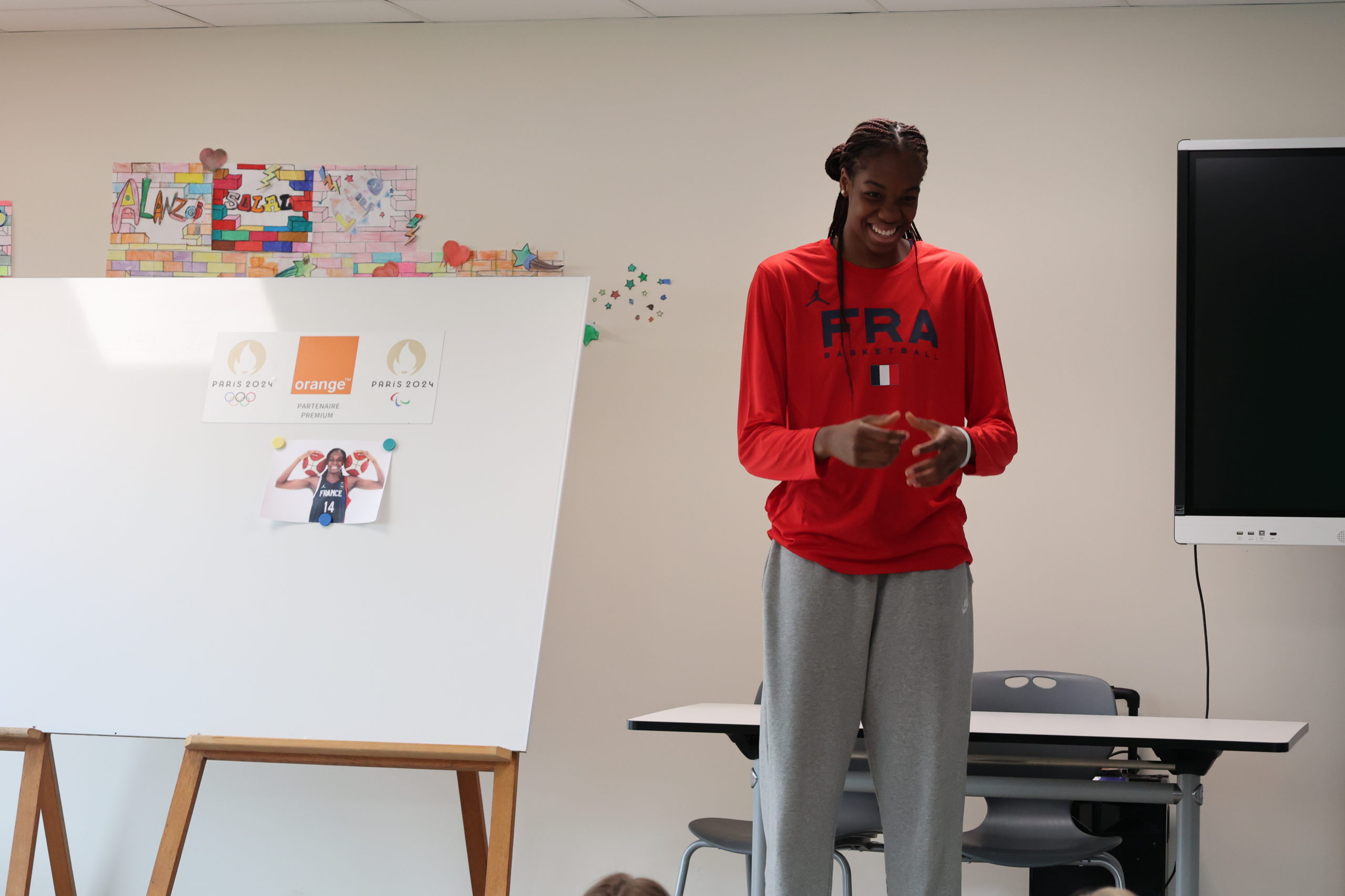 La basketteuse de l’équipe de France féminine Dominique Malonga à l’école élémentaire Sévigné Paul Bert