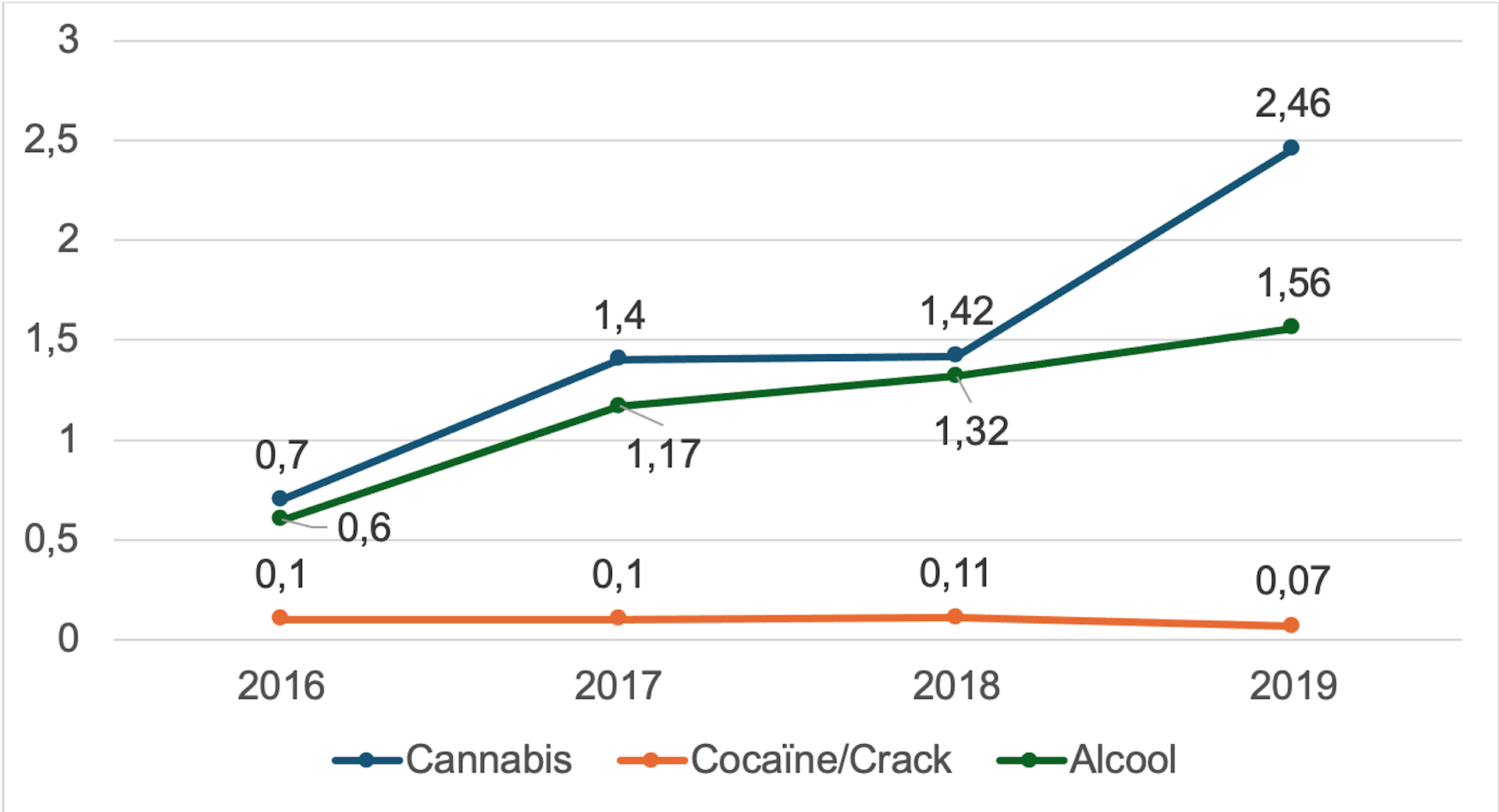 Figure 2 : Consommation de substances psychoactives au Bénin pour 100 000 habitants entre 2016-2019