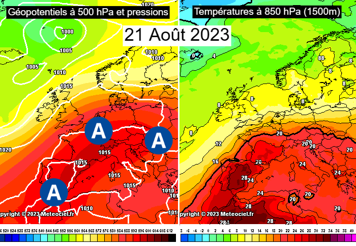 Le dôme de chaleur qui s’apprête à se former en cette seconde quinzaine d’août 2023 sera moins étendu. Contrairement à août 2003, les hautes pressions ne vont pas s’étendre jusqu’en Scandinavie, ce qui ne permettra pas à l’air le plus chaud d’atteindre les régions les plus septentrionales de la France. Entre la Bretagne et la Belgique, on ne parlera que d’un coup de chaud classique. Cependant, on note que les températures de la masse d’air vont atteindre des niveaux similaires à ceux observés en 2003 dans le sud de l’hexagone, ce qui est d’autant plus impressionnant que cette canicule intervient plus tard dans l’été que celle d’il y a 20 ans.