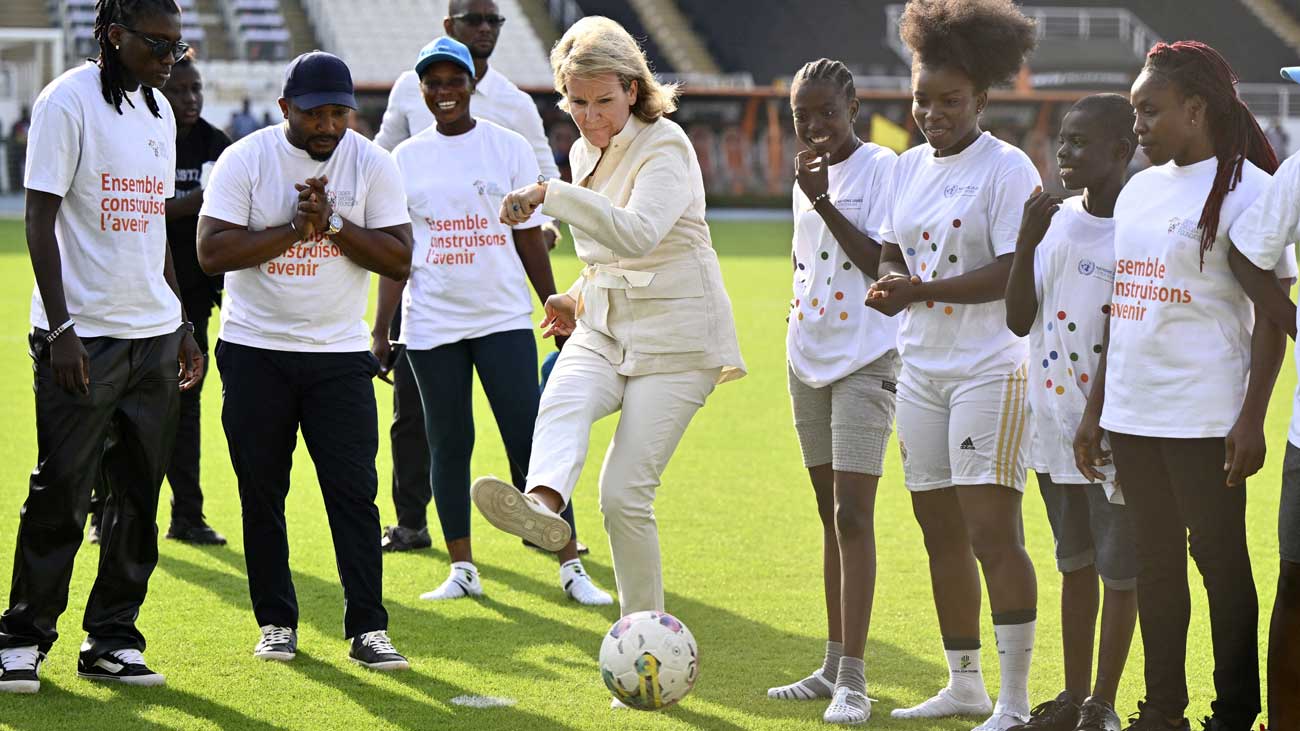 La reine Mathilde effectue ce séjour en Côte d’Ivoire en sa qualité de défenseur des Objectifs de développement durable (ODD). La visite au stade Laurent Pokou de San-Pédro était organisée pour promouvoir le sport féminin et débattre de l’égalité des genres en matière d’accès au sport. San-Pédro est située sur la côte ouest du pays, à plus de 360 kilomètres d’Abidjan.