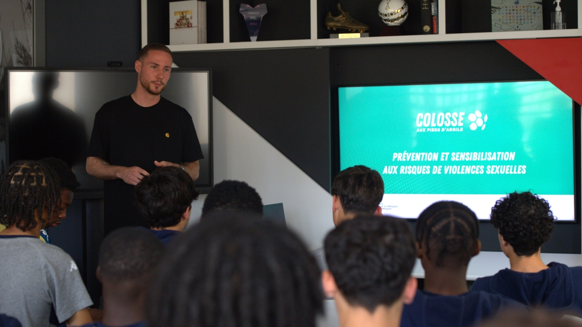 « Sensibiliser les jeunes joueurs au sujet des violences sexuelles, leur apprendre à se protéger, déconstruire le profil d’un agresseur et leur dire que s’ils sont victimes de violence il faut en parler à quelqu’un de confiance » pose Guillaume Guidez, chargé de mission prévention PACA Corse pour l’association « Colosse aux pieds d’argile », intervenu durant deux jours auprès des jeunes joueurs du Club et du personnel de l’Academy. « Le but c’est de sensibiliser, faire de la prévention et libérer la parole. »