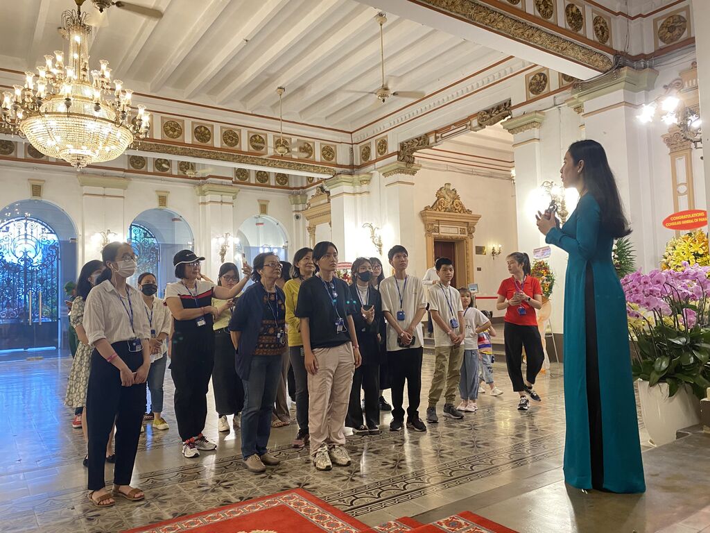 | Des voyageurs découvrent le siège du Conseil populaire et du Comité populaire de Hô Chi Minh-Ville. |