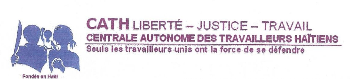 La CATH demande aux syndicalistes du monde et particulièrement ceux/celles du Brésil d’aider le peuple Haïtien dans sa détresse inédite, de sensibiliser le Président Luiz Inácio Lula da Silva pour qu’il intervienne auprès du G-20 en lui demandant au moins de respecter la souveraineté du peuple haïtien et d’accepter qu’un Juge intègre issu de la Cour de Cassation soit installé comme Président provisoire conformément à la constitution pour diriger, stabiliser et organiser les élections démocratiques et transparentes afin que le pays puisse retourner à l’ordre constitutionnel, la condition sine qua non pour relancer les emplois à la satisfaction des travailleuses et travailleurs haïtiens.
