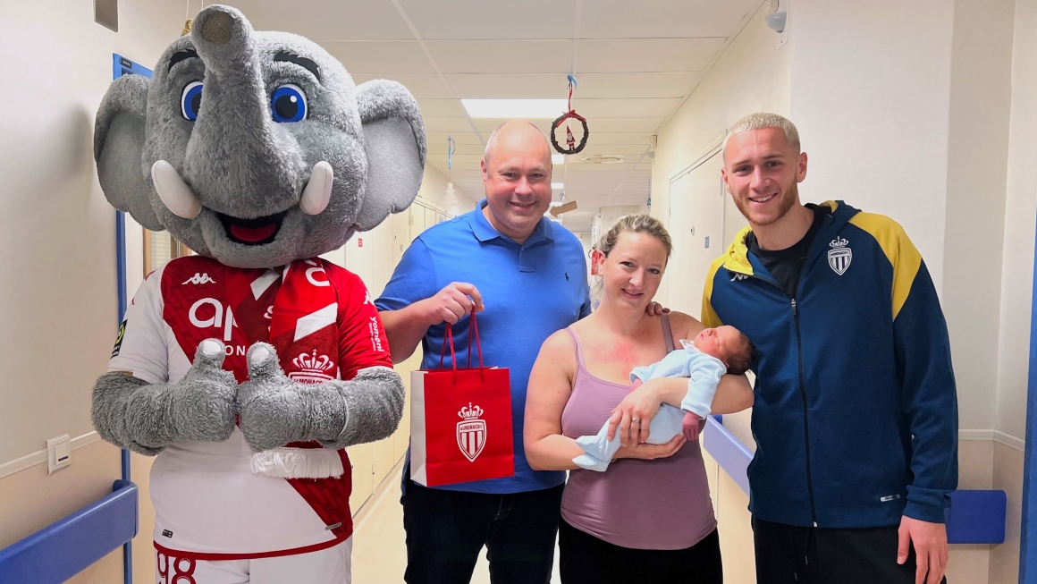 Alors que l’AS Monaco offrira désormais un coffret naissance du Club à tous les nouveau-nés de parents monégasques ou de résidents de la Principauté, Yann Lienard et Bouba ont remis symboliquement, ce jeudi 4 janvier au Centre Hospitalier Princesse Grace (CHPG), un kit à Michelle et Eden, tous les deux nés en 2024