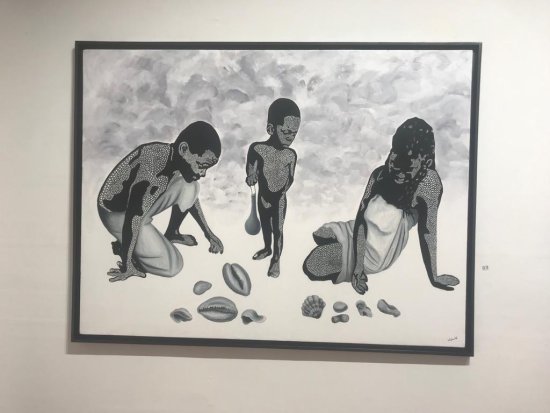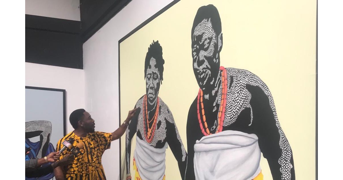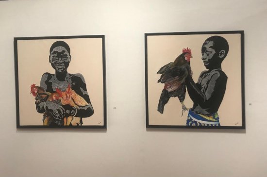 ‘’Nathanaël Vodouhè en perspectives’’, c’est l’intitulé de l’exposition ouverte au public à l’Institut français du Bénin. L’artiste béninois oriente ses réflexions vers l’humanité. A travers ses œuvres exposées à l’Institut français, il met l’accent sur l’importance de la culture dans la vie d’un être humain, d’un peuple. Nathanaël Vodouhè utilise des pointillés pour faire allusion aux valeurs endogènes. « Ces pointillés représentent notre culture, nos valeurs endogènes, ce que nous avons hérité de nos parents. Sans les pointillés sur ces personnages, on ne pourra pas les identifier. C’est grâce à notre culture qu’on nous identifie », a expliqué l’artiste.