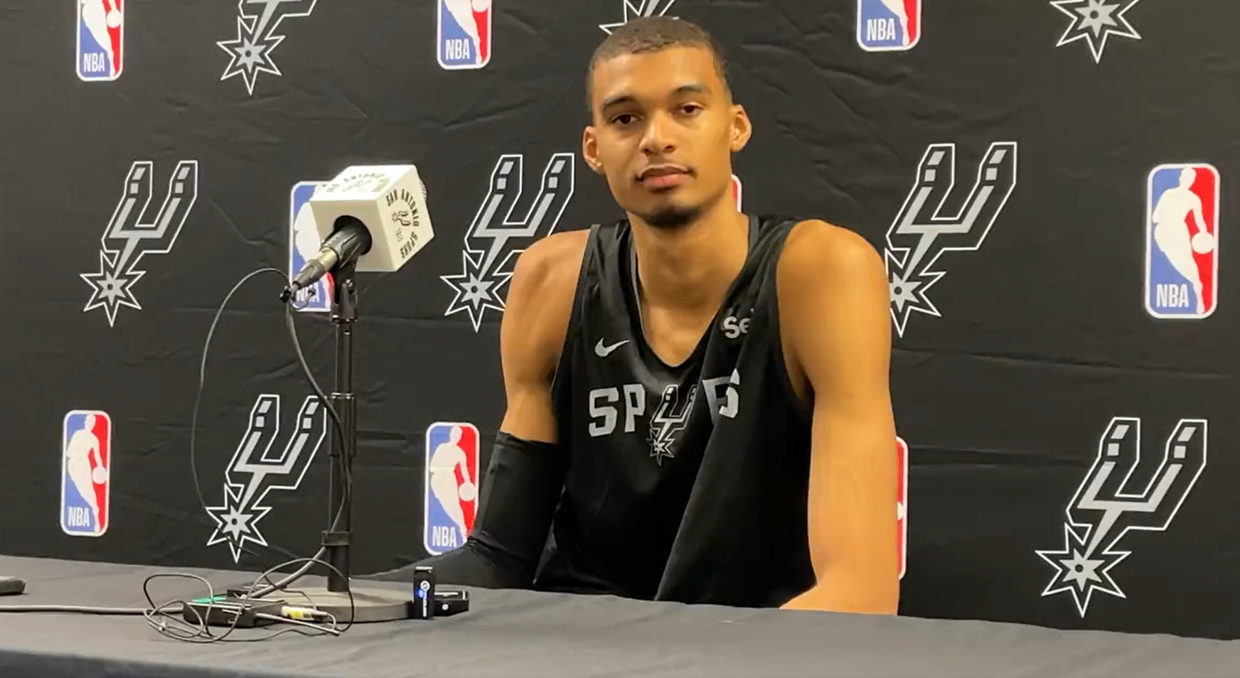 Wemby parle également du scrimmage, mais aussi de l’Équipe de France. 🇫🇷#SKWEEKSkwad #Wembanyama pic.twitter.com/hJyqXaQoZQ